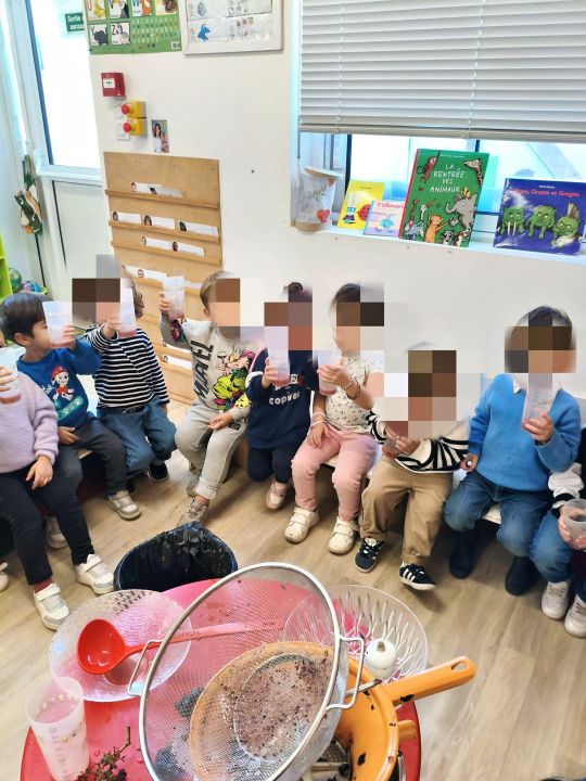 Les TPS-PS ont lavé, éraflé (retirer chaque grain de la rafle) et pressé du raisin pour fabriquer un délicieux jus de raisin.