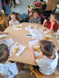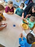 En effet, depuis lundi, la plupart des classes était en activité cuisine ou découverte culinaire pour "la semaine du goût". Pour le cycle 1, ateliers et recettes en lien avec l'automne et les fruits et légumes du moment (compote, tarte aux pommes, moelleux courgette chocolat ou potimarron, carrot cake ...). Les classes du cycle 2 ont confectionné des gâteaux à partir des différents ingrédients ramenés de leur visite au Moulin de la Veyssière: amandes, noisettes ... en farines et fruits.