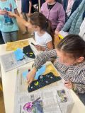 Dans toute l'école, les semaines précédentes ont été occupées en arts visuels par la préparation de notre Grande Lessive automnale, avec pour thème "NUIT et JOUR, REFLECHIR les LUMIERES" L'occasion , dans les différentes classes, de travailler la notion de lumière, ombre, jour/ nuit sous plusieurs aspects. Et d'expérimenter de nouvelles techniques plastiques. Pour certains, il a été intéressant de faire un lien avec l'exposition photo visitée au centre culturel, exposition qui explorait les lumières. Au final, des oeuvres aussi riches que variées pour le plaisir des parents conviés à la sortie des classes .
